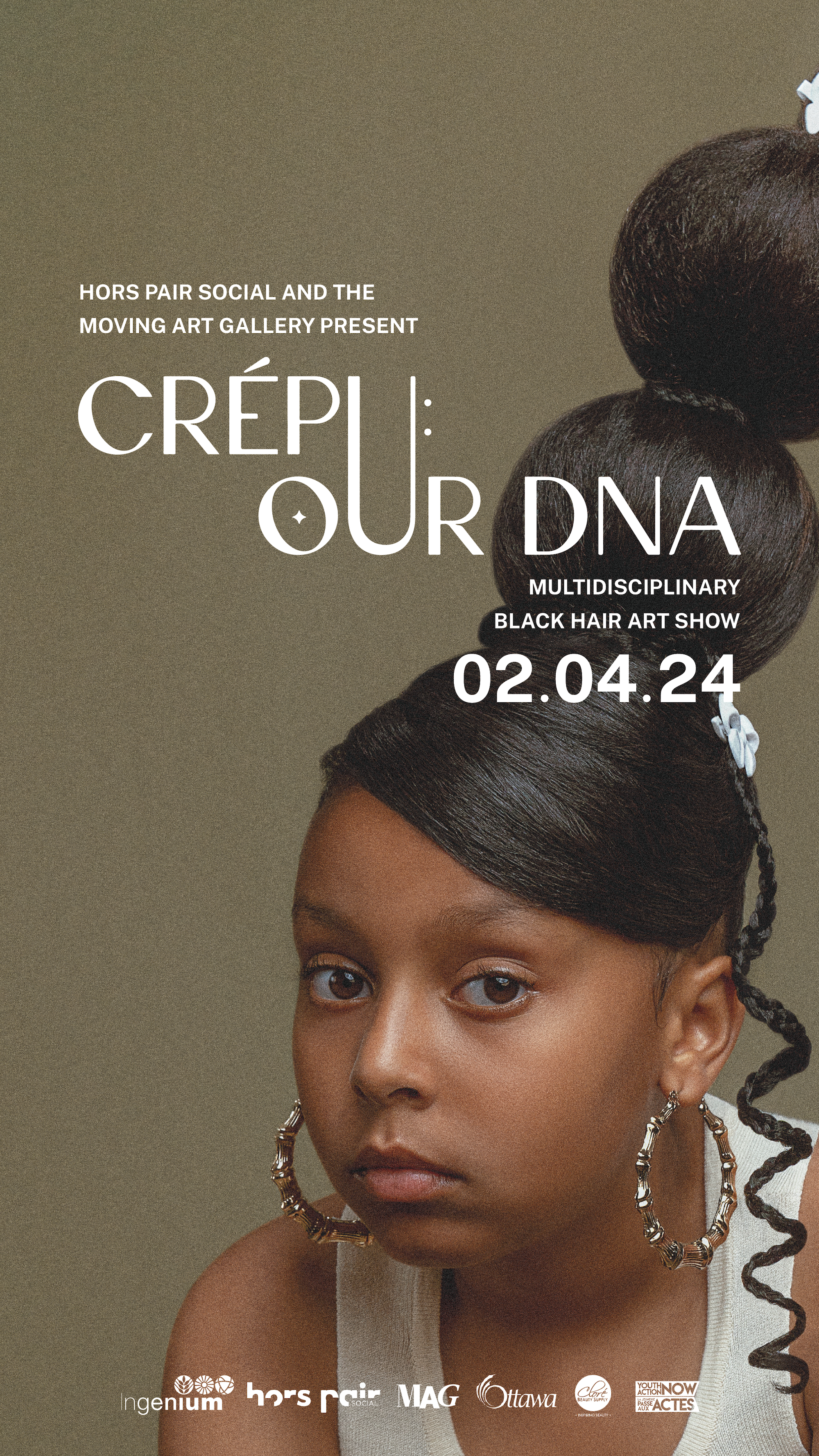 Presented in collaboration between Hors Pair Social, The Moving Art Gallery and Ingenium, “Crépu: Our DNA” is a multidisciplinary Black hair art show, showcasing the complexity and innovation that Black folks have engineered in hair care.